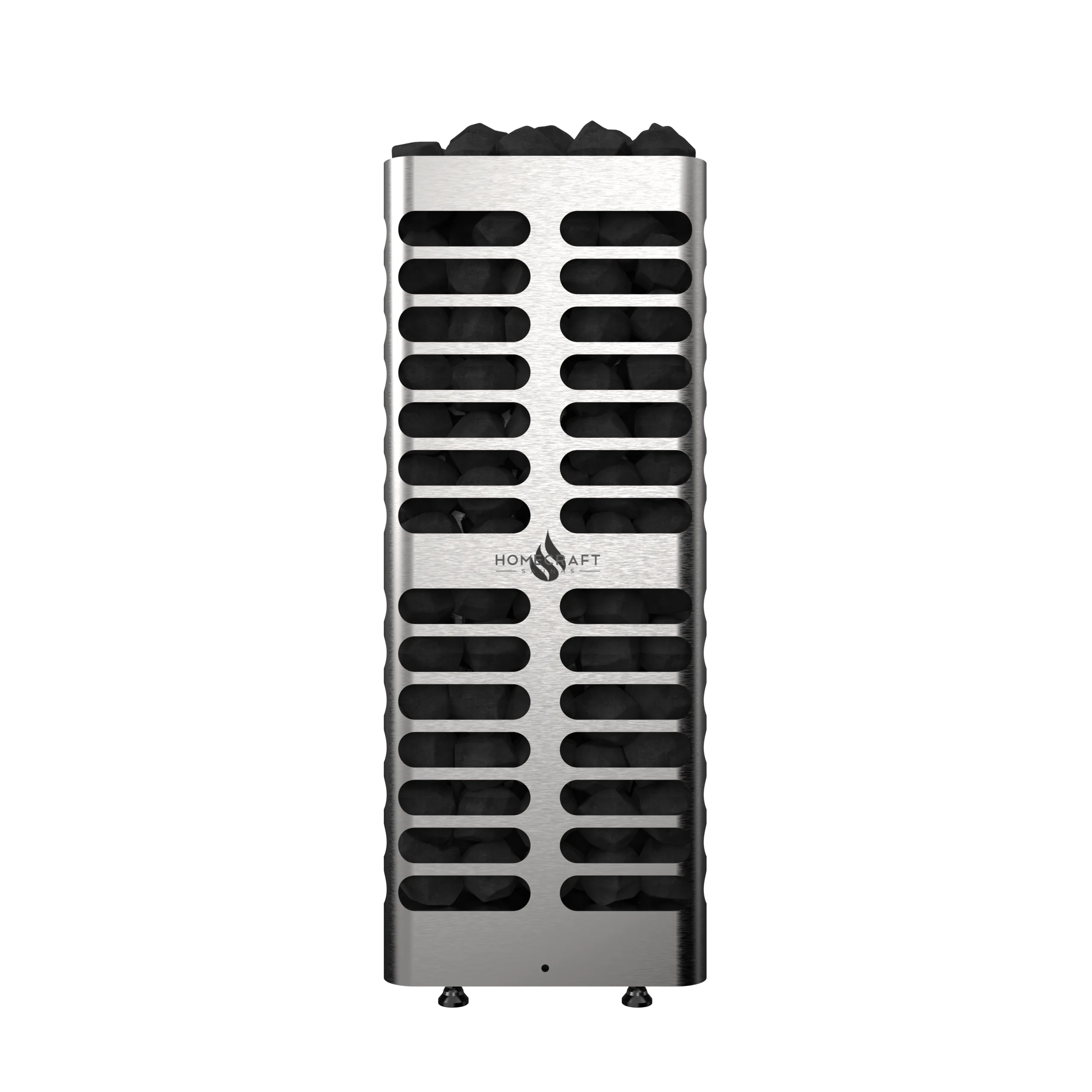 The Revive Sauna Heater combines modern, high-end design with powerful performance for an exceptional sauna experience. Its tower design holds up to 250 lbs of stones, allowing for large amounts of steam and increased humidity, while the inner air-flow chamber ensures efficient, even heating. Built from 100% stainless steel with protected heating elements, it delivers lasting durability and precise control over heat.