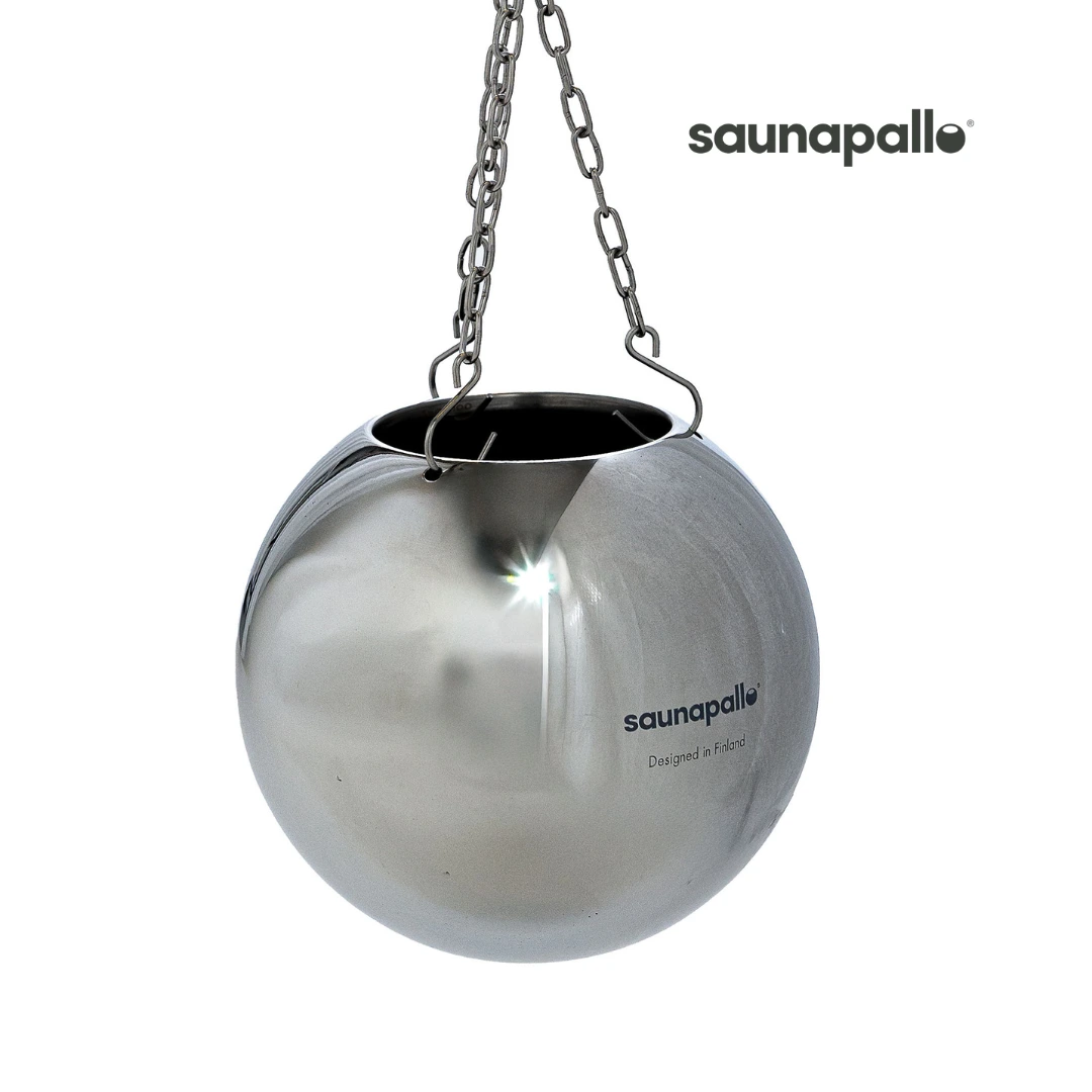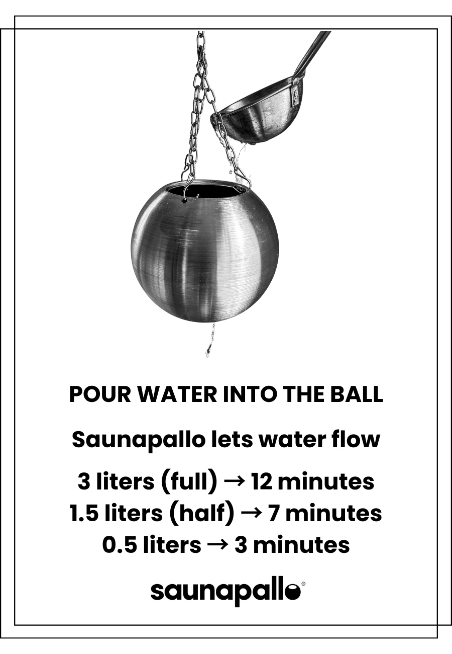 Simply fill the ball with water before or during your sauna session, then nudge it with a ladle to set it gently swinging. As it moves, the Saunapallo® releases water evenly through the small holes at the bottom, producing relaxing, long-lasting steam.
